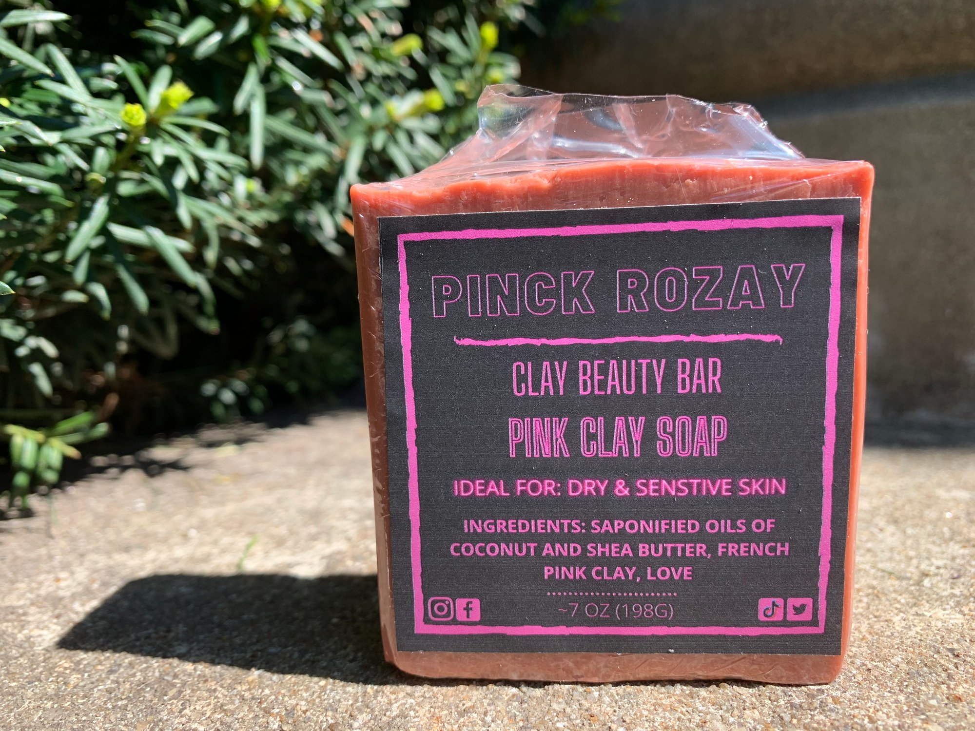 Get your natural skin recovery journey started with Pinck Rozay’s select beauty clay soaps. Each bar of soap is a large 7oz and is made with a super moisturizing oil blend, and enhanced with clays that each serve their own purpose. These bars will be beneficial to just about anyone, but especially those who suffer from skin ailments and those looking to take their skincare routine to the next level! Our select clays’ detoxifying effects, absorption of impurities and unique mineral composition make these bars ideal for healing and restoring inflamed, ailed and weathered skin. This bar is ideal [For Dry/Dull + Sensitive Skin]. This bar can: